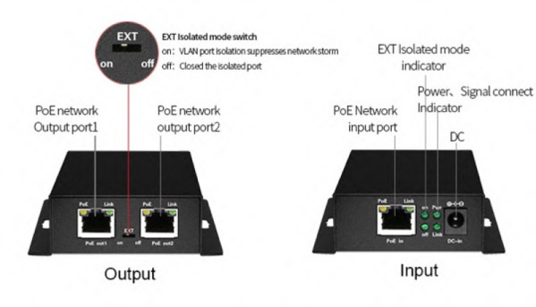 2 portos ethernet PoE extender; 30 W; 250 méter; túlfeszültség védelem; IP30
