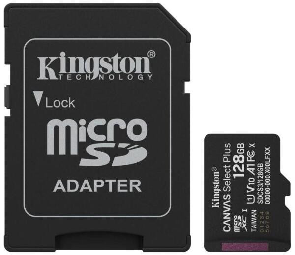 Kingston SDCS3/128GB 128GB microSD kártya; microSDXC; UHS-I Speed Class; U1; V10; adapterrel